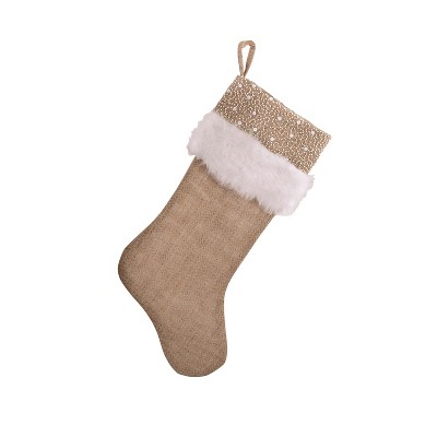Saro Lifestyle Faux Fur and Beaded Christmas Stocking